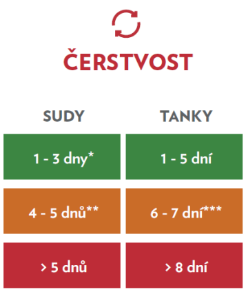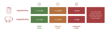 ** platí pouze pro některá piva za dodržení všech podmínek (tlačný plyn, teplota skladování, černost a kvalita sanitace), viz dále