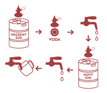 - Před naražením sudu i tanku zkontrolovat čistotu fitingu/ narážecí armatury tanku a fiting sudu opláchnout pitnou vodou.